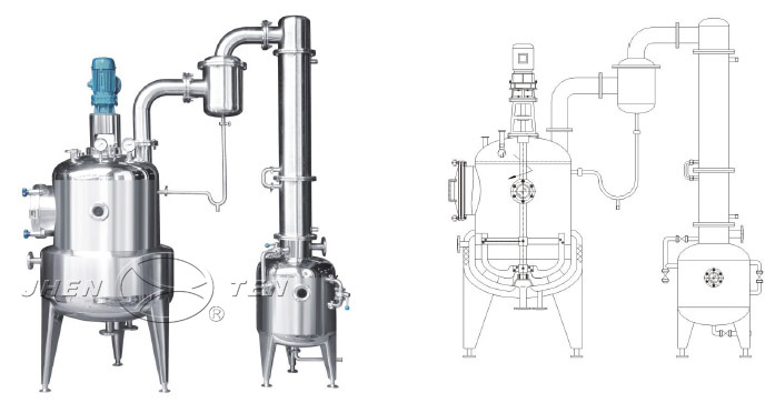 本設(shè)備主要包括濃縮罐、冷凝器、汽液分離器、冷卻器、集液器五部件,濃縮罐為夾套結(jié)構(gòu),冷凝器為列管式,冷卻器為盤管式結(jié)構(gòu)。本設(shè)備適用于制藥、食品、化工等行業(yè)對(duì)料液的濃縮,并且可作為回收酒精和簡(jiǎn)單的回流提取之用。設(shè)備與物料接觸部分均采用不銹鋼制造,具有良好的耐腐性,符合GMP標(biāo)準(zhǔn)要求。