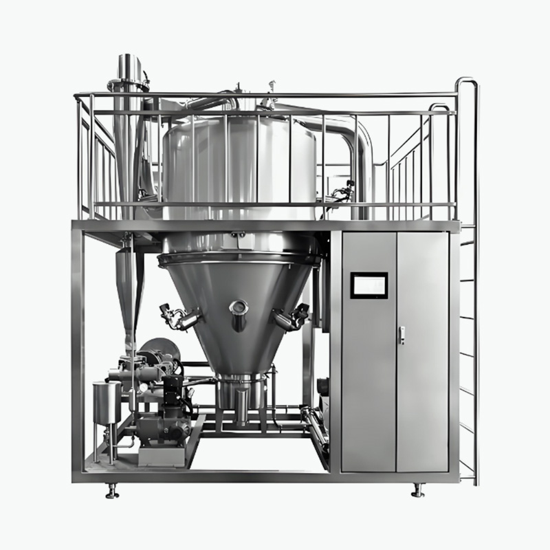 Utilizing a centrifugal atomizer with adjustable inlet air temperature, this system delivers high thermal efficiency for continuous production. Featuring mirror-polished interior surfaces and integrated CIP cleaning, it is engineered for instant coffee and bone broth powder manufacturing.