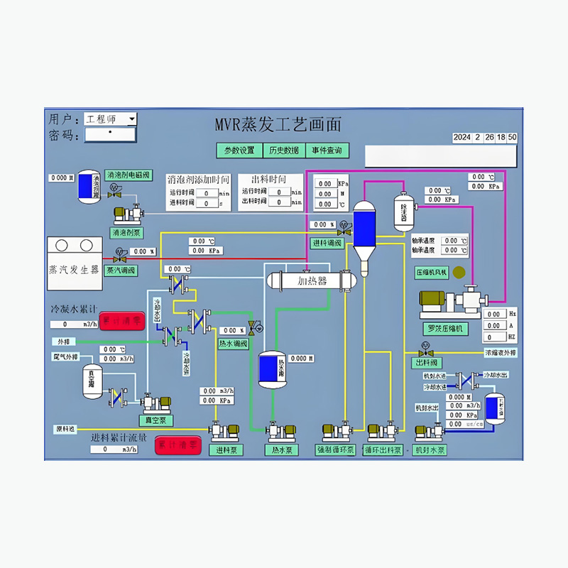 Enables seamless device-to-information layer integration via OPC-UA protocol. With millisecond-resolution data acquisition, it ensures real-time uploading of full evaporation process parameters (energy consumption/output/quality) to MES/ERP systems. Equipped with electronic batch records and audit trail functionality, this empowers clients to achieve digital manufacturing transformation and compliance management upgrades.